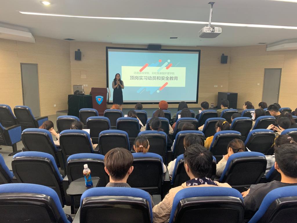 11月6日下午,动漫游戏学院、彩虹鱼康复护理学院分专业开展2020届毕业生顶岗实习集中安全教育和动员。党总支书记茅千里、副院长黄璐、党总支副书记副院长郭捷、全体专业教师、学工办成员、2020届毕业班班主任和400余名毕业年级学生参加了本次会议。