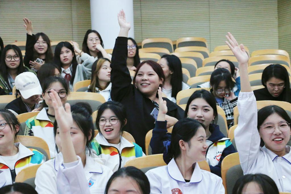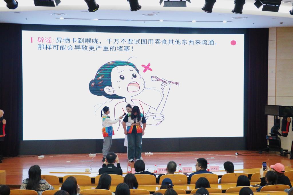 比赛现场,针对心肺复苏术、海姆立克急救法、创伤包扎等急救技能,选手们用生动有趣的形式、通俗易懂的语言把专业实用的急救知识传播给在场每一位观众,互动不断,引来阵阵掌声。统分环节的现场急救理论知识抢答环节,更是点燃了观众们的热情,同学们纷纷踊跃举手,参与度极高。“通过参加此次大赛,我也学到了更多的应急救护知识与技能,今后我将继续秉承着生命至上的理念和‘人道、博爱、奉献’的红十字精神,做应急救护知识的传播者与践行者。”来自护理2222班的潘菲菲在赛后说到。