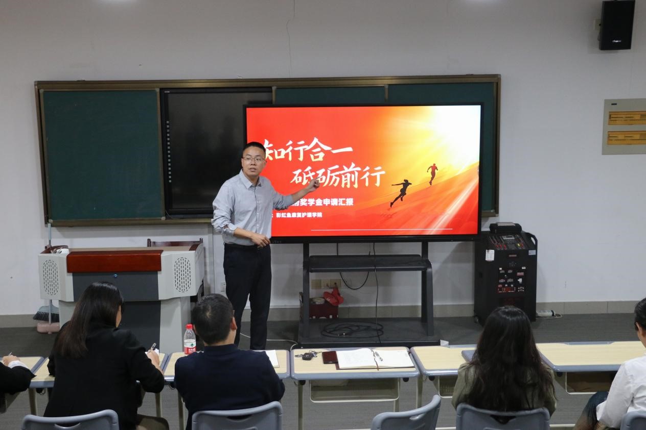 为切实做好2023-2024学年省政府奖学金评选工作,充分发挥奖学金的引领与激励作用,10月9日下午,彩虹鱼康复护理学院在3214会议室召开省政府奖学金候选人评选展示会,学院副院长郭君平、直属党支部副书记杨旭辉、学工办主任、专业负责人、纪检委员、辅导员以及省政府奖学金候选人、学生代表参加会议。