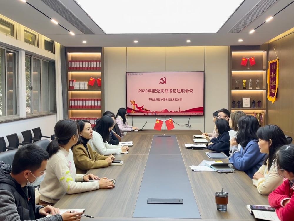 为认真学习贯彻习近平新时代中国特色社会主义思想和党的二十大精神,进一步深化巩固主题教育成果,充分发挥党支部战斗堡垒作用,12月13日下午,彩虹鱼康复护理学院直属党支部在3209会议室召开2023年度党支部书记述职会议,支部全体党员参加会议。