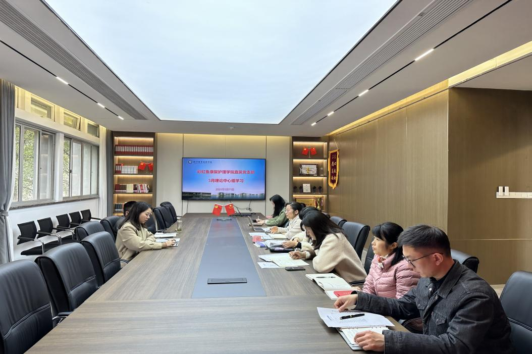 3月11日下午,彩虹鱼康复护理学院直属党支部在3209会议室召开理论学习中心组学习会,彩虹鱼康复护理学院直属党支部书记、副院长韩丹,副院长郭君平、支部委员、全体中层教师参加,会议由韩丹主持。