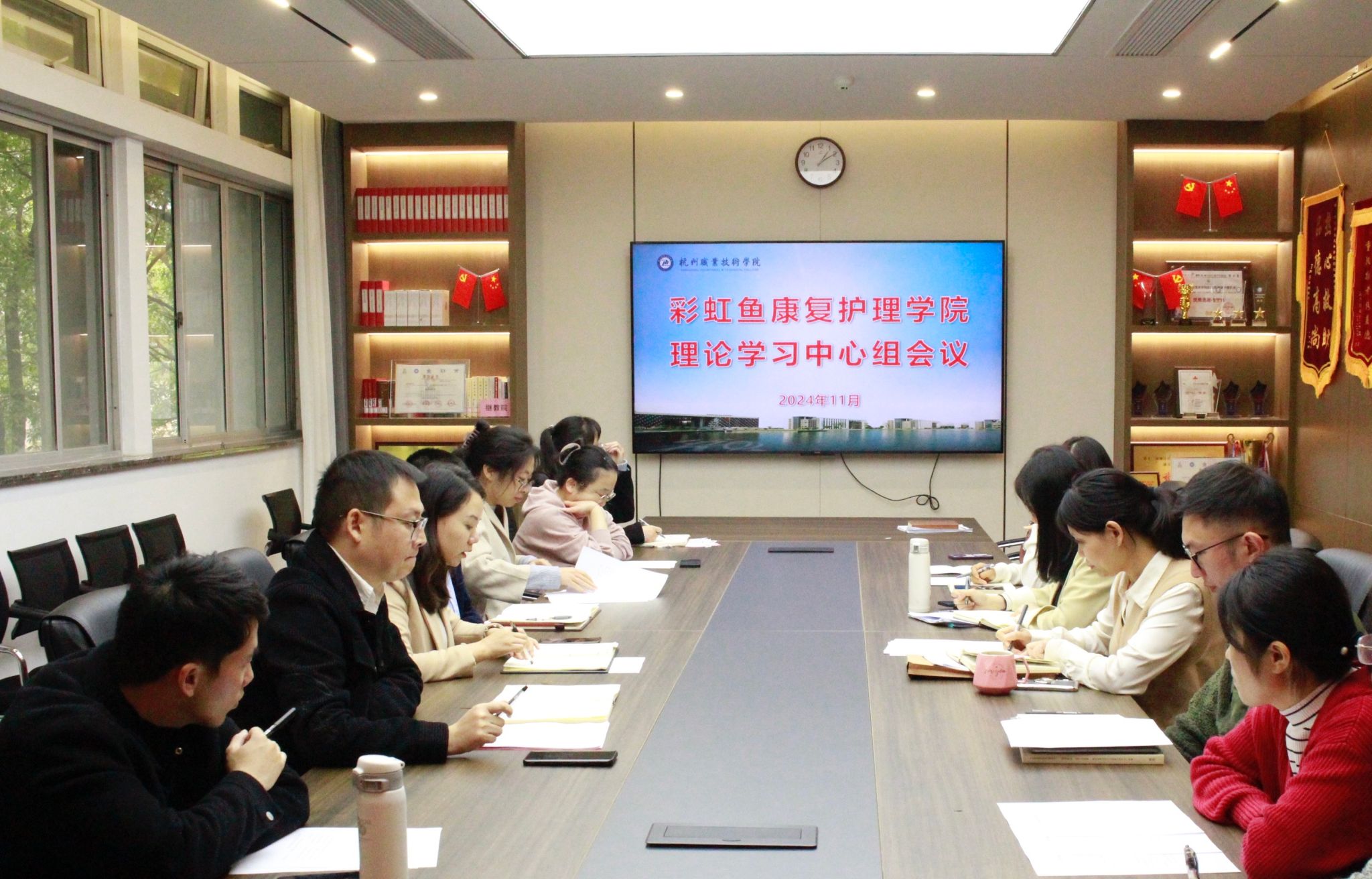 11月25日下午,彩虹鱼康复护理学院在3211会议室召开11月理论学习中心组学习会,进一步深入学习贯彻党的二十届三中全会精神。学院领导班子、学院中层干部、支部委员参加学习。会议由直属党支部书记、副院长韩丹主持。