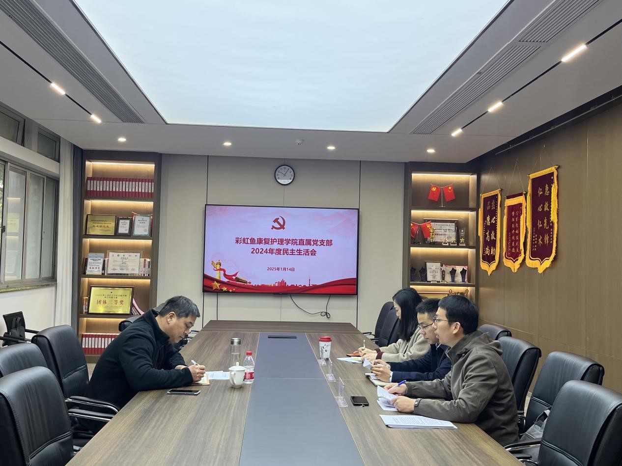 1月14日上午,彩虹鱼康复护理学院直属党支部2024年度民主生活会在3211会议室召开。校党委委员、副校长程利群,学院领导班子成员、直属党支部委员参加会议。会议由彩虹鱼康复护理学院直属党支部副书记王英杰主持。