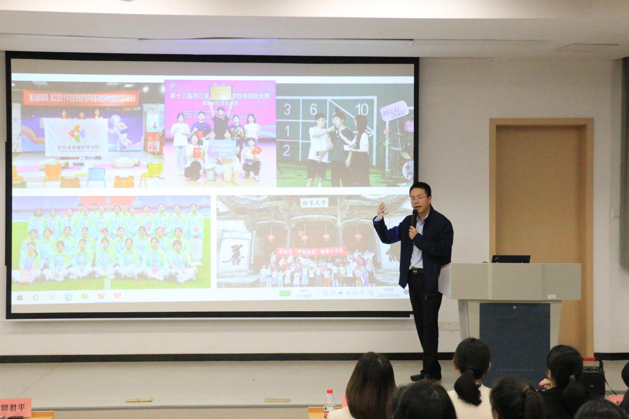 副院长郭君平从“风景”引入,以幽默风趣的语言和临床事例分享医学生的大学生涯和必看的医学纪录片,叮嘱新生相信学习的力量;用100多年前广济医院院长梅滕更先生向一位小患者深深鞠躬,小患者同时深鞠躬还礼的老照片,提醒同学们作为医护工作者,要始终记住医学的温度,牢记医者仁心,将和谐与温暖稳固起来、延续下去;鼓励学生在杭州、要融入杭州、多感受杭州人文历史,投身广阔的第二课堂,在躬身实践中磨砺自身本领,丰富大学生活。