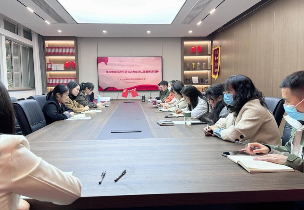 11月29日下午,彩虹鱼康复护理学院直属党支部在3209会议室开展党员政治理论集中学习,专题学习贯彻习近平总书记考察浙江重要讲话精神。彩虹鱼康复护理学院直属党支部书记韩丹主持会议,支部全体党员参加。