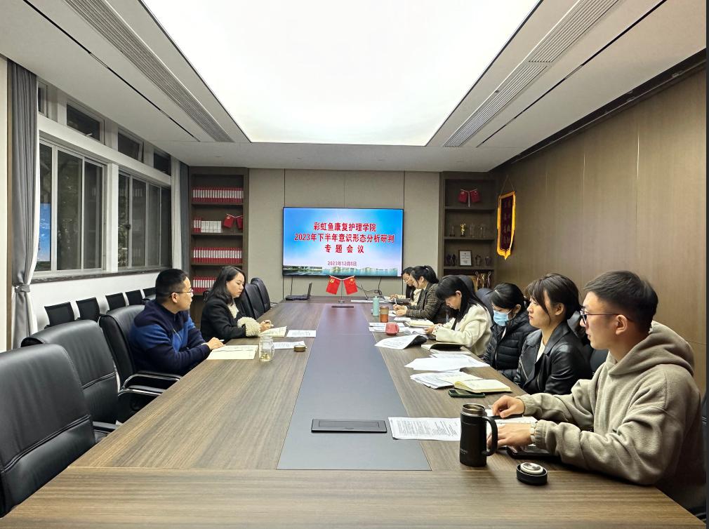 为深入贯彻落实习近平总书记关于意识形态工作的重要指示精神,进一步夯实彩虹鱼康复护理学院意识形态工作。12月11日下午,彩虹鱼康复护理学院在3209召开2023年下半年意识形态工作分析研判专题会议。学院领导班子、中层教师参加会议。会议由彩虹鱼康复护理学院直属党支部书记韩丹主持。