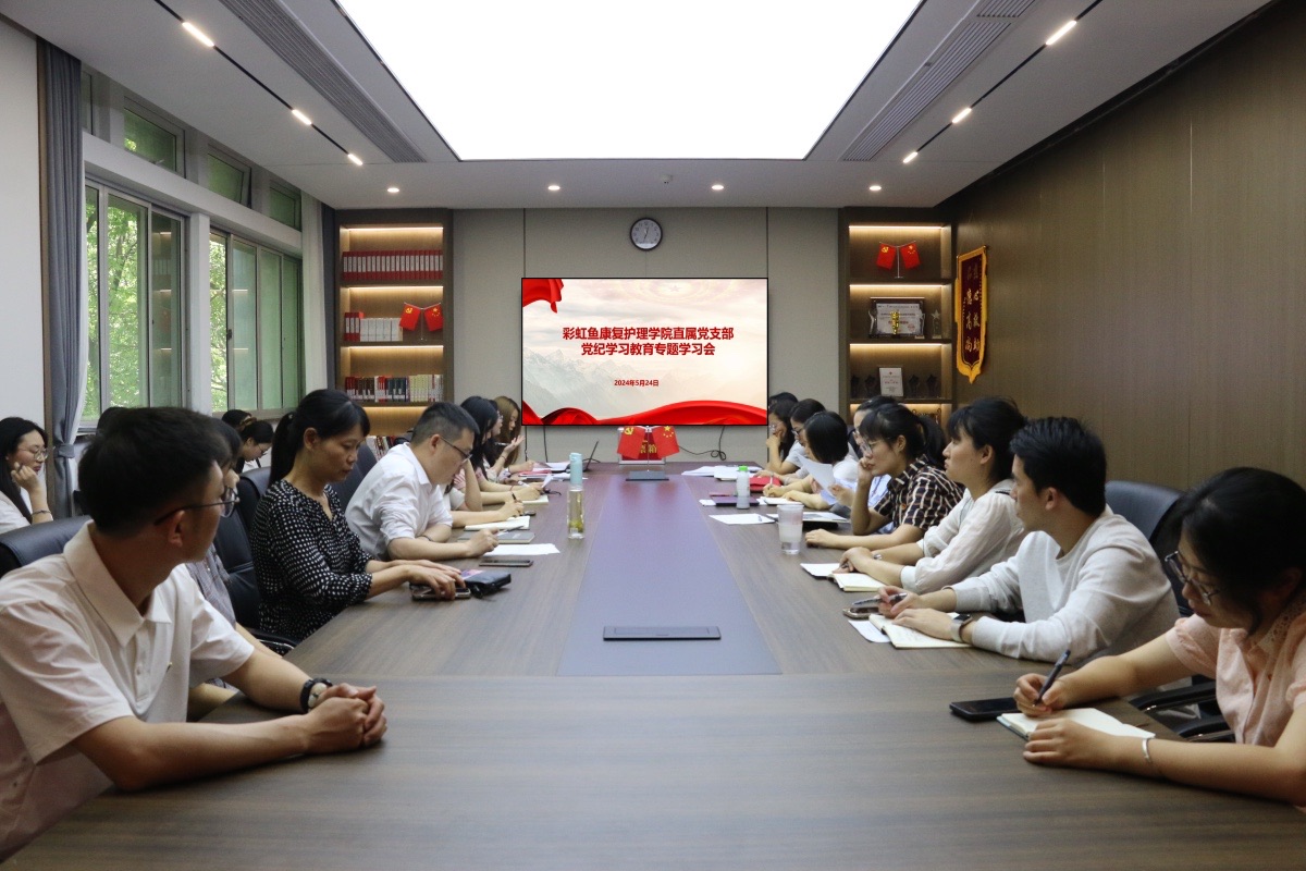 5月30日中午,彩虹鱼康复护理学院直属党支部在3209会议室召开党纪学习教育专题学习会,会议由彩虹鱼康复护理学院直属党支部书记韩丹主持,支部全体党员参加。