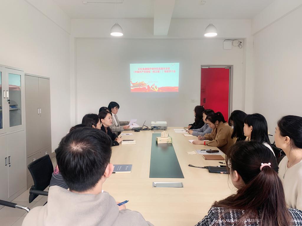 11月23日,彩虹鱼康复护理学院直属党支部在3202会议室集中学习新修改的《中国共产党章程》。彩虹鱼康复护理学院直属党支部书记、副院长韩丹主持学习,支部全体党员参加学习。