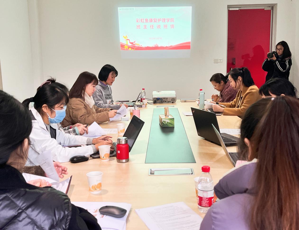 为深入学习贯彻习近平新时代中国特色社会主义思想和党的二十大精神,深化“三全育人”综合改革,进一步加强学院班主任队伍建设,提升大学生思想政治教育工作质量,12月7日下午,彩虹鱼康复护理学院在3202会议室开展了班主任说班情比赛。彩虹鱼康复护理学院直属党支部书记、副院长韩丹、教师代表、学生代表共15人担任比赛评委,学院全体班主任参赛,比赛由学工办主任王正主持。