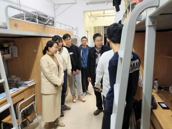 随后,学院领导走进锦晖苑学生公寓,与联系寝室的学生亲切地拉起家常。韩丹仔细查看宿舍的设施是否完善,用电是否安全,提醒同学们遇到困难及时与学院老师联系。郭君平询问了同学们在寝室的健身情况,提供了科学指导,并希望同学们保持健康的体魄,周末多出去走走看看。同学们纷纷表示,感谢学院老师的关心,一定会以积极上进的态度迎接新学期的学习生活。