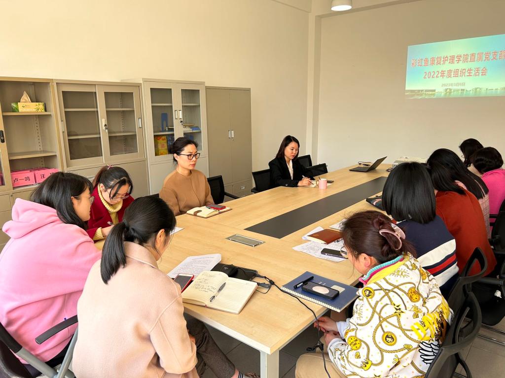 3月6日下午,彩虹鱼康复护理学院直属党支部开展了2022年度组织生活会,会议由支部书记韩丹主持,全体党员参加会议。