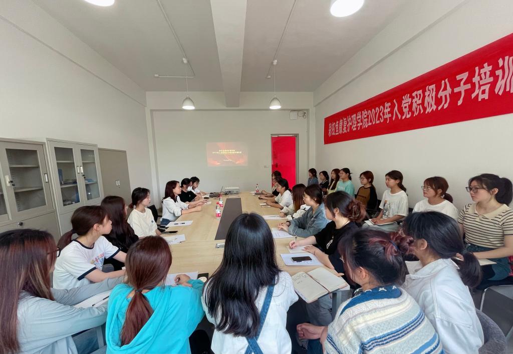 为深入学习贯彻习近平新时代中国特色社会主义思想,切实提升党员发展质量,4月19日下午,彩虹鱼康复护理学院直属党支部在3202会议室举行入党积极分子培训班开班仪式,直属党支部书记韩丹作开班动员讲话,并讲党课,组织员孙丹霞、辅导员郭常娟以及24名入党积极分子参加,开班仪式由孙丹霞主持。