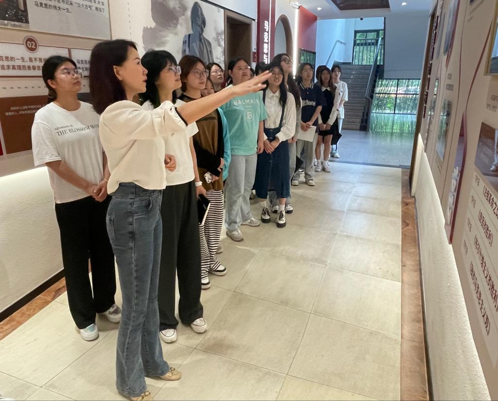 韩丹带领学员们前往马克思主义学院必由之路主题馆开展现场学习,回顾了马克思主义在中国的光辉历程,韩丹深入浅出、声情并茂的带领同学们探索了1840年至2021年历史上的重大事件内容为主线,回顾百年来历史上的重大时刻,展现了中国共产党在领导革命、建设和改革实践中培育出来的一系列宝贵精神。引导同学们深情缅怀先烈,学习感悟革命精神,从各个时期的先烈身上汲取健康向上的正能量,帮助同学们在烈士事迹的熏陶、感染和启发中树立正确的人生观、价值观和世界观。不断增强同学们继承和发扬革命优良传统的自觉性和主动性。