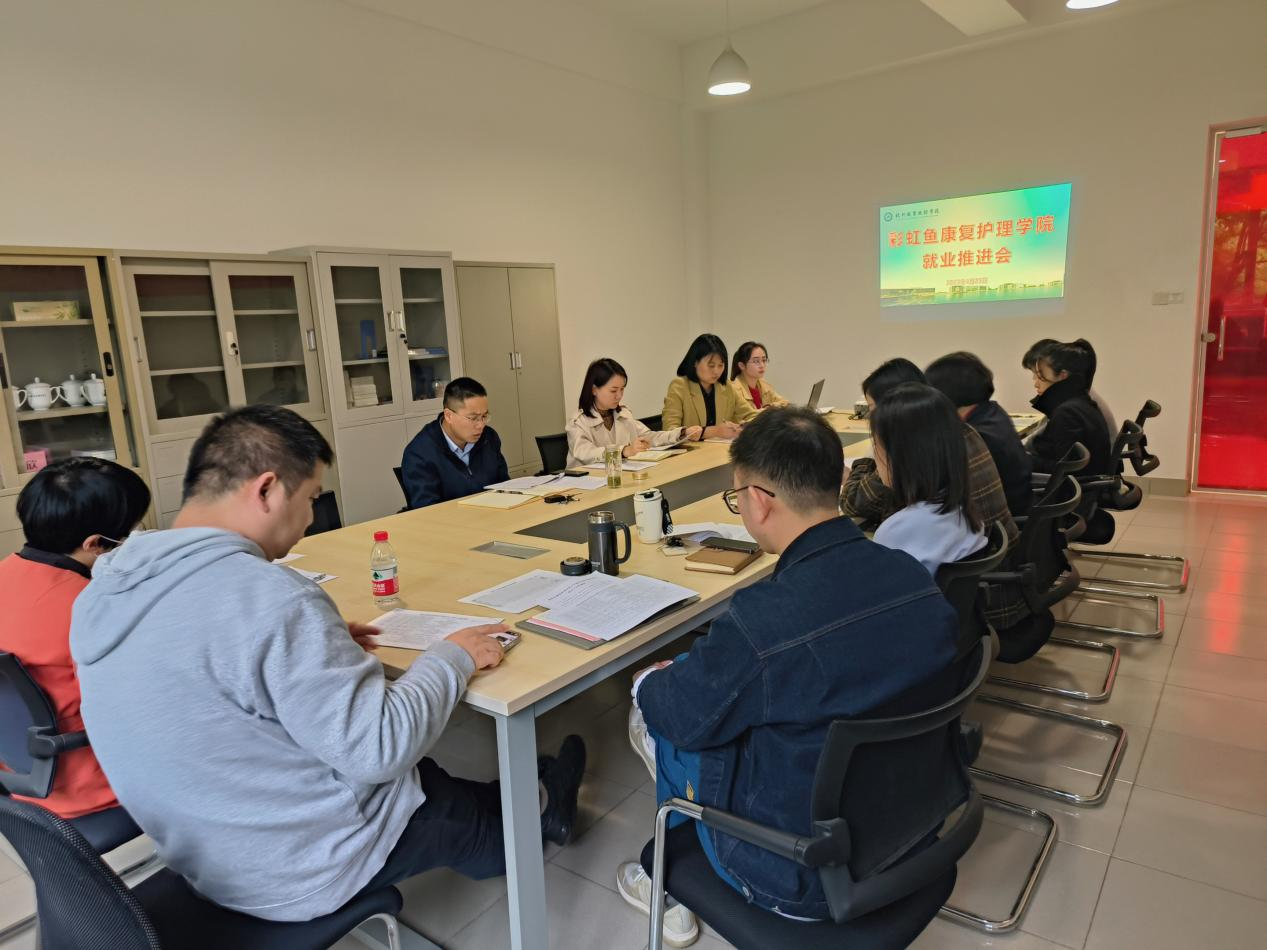 为深入落实教育部、教育厅和学校关于2023届普通高校毕业生就业创业工作会议精神,进一步推进毕业生高质量就业,4月25日下午,彩虹鱼康复护理学院在3202会议室召开就业工作推进会。学院直属党支部书记、副院长韩丹、副院长郭君平、三办主任、专业负责人、毕业班班主任、实习指导教师、辅导员参会,会议由学工办主任王正主持。