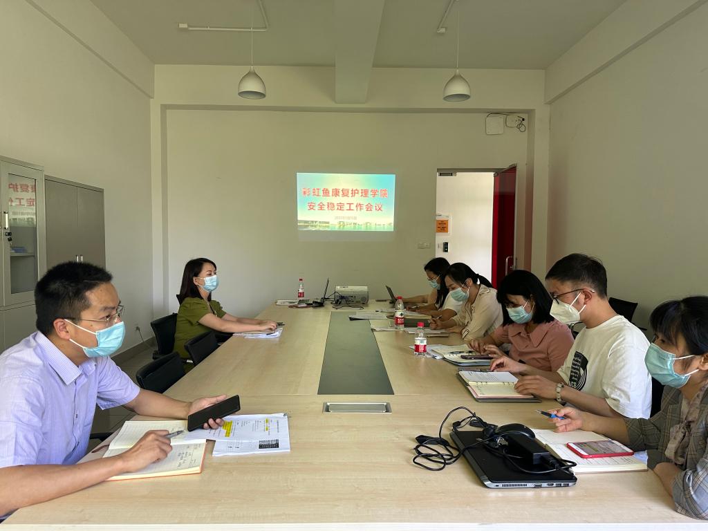 为切实加强学院安全管理工作,进一步提高安全工作的针对性、实效性,扎实构建平安和谐的育人环境,彩虹鱼康复护理学院于5月15日下午在3202会议室召开了安全工作专题会议。学院领导班子、中层干部参加本次会议,会议由彩虹鱼康复护理学院直属党支部书记、副院长韩丹主持。