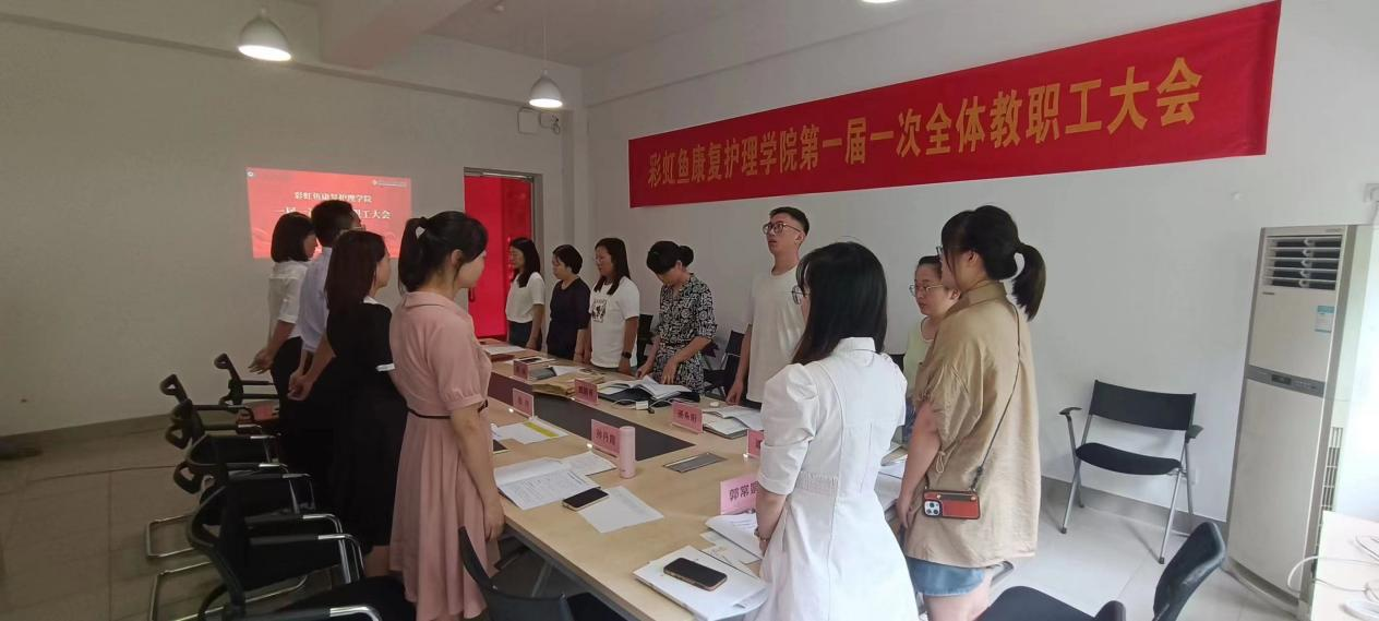 砥砺前行,谱写华章。彩虹鱼康复护理学院一届一次全体教职工大会在《国际歌》热血澎湃的乐曲声中落下帷幕,圆满地完成各项议程,促使教职工同心同德、团结一致、砥砺奋进,用实干实绩践行会议精神。