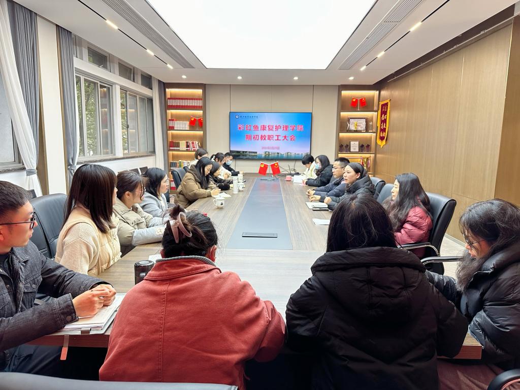 为确保新学期开学各项工作平稳有序进行,2月29日下午,彩虹鱼康复护理学院在3209会议室召开新学期教职工大会,学院全体教职工参加。会议由郭君平主持。