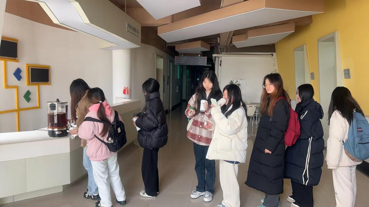 春晖社指导老师赵杰浩与春晖社同学为学院学子精心准备玫瑰花、红枣、枸杞、冰糖等食材,熬煮成清香甜美的元气春茶,邀请同学们课间品尝,暖身解乏,现场谈笑言欢。师生热络畅谈,分享寒假趣事和开学计划。同学们纷纷表示,充分感受到学院和春晖社同学们满满的关爱,幸福感加倍,将在新学期撸起袖子再奋斗。
