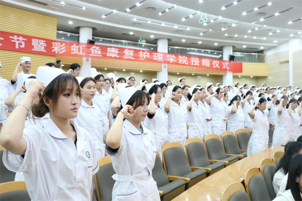 额冠燕尾,飘然一袭粉白衣;提灯前行,耀然万盏烛火。神圣而庄严的授帽仪式落下帷幕,彩虹鱼康复护理学院全体护生将忠诚践行南丁格尔的铿锵誓言,赓续天使榜样力量,在勤耕笃行之路上绽放青春的光芒,为推动护理事业发展奉献力量,成为有理想、有能力、有担当的护理人。