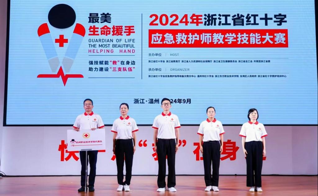 本次大赛由浙江省教育厅、浙江省人力资源和社会保障厅、浙江省卫生健康委员会、浙江省红十字会、浙江省总工会、共青团浙江省委主办,浙江省红十字会应急救护指导和备灾救灾中心、温州市红十字会、浙江东方职业技术学院、龙湾区人民政府、浙江省红十字救护培训中心联合承办。本次大赛共有全省11个设区市代表队和杭州职业技术学院等3个高校代表队共42名红十字救护师同台竞技,比赛精彩纷呈,现场气氛热烈。竞赛采用救护教学技能(说课)、救护理论考核、救护操作技能比赛相结合的方式进行,全面综合考察教师应急救护基本知识、专业技能、应急识别等能力和素养。