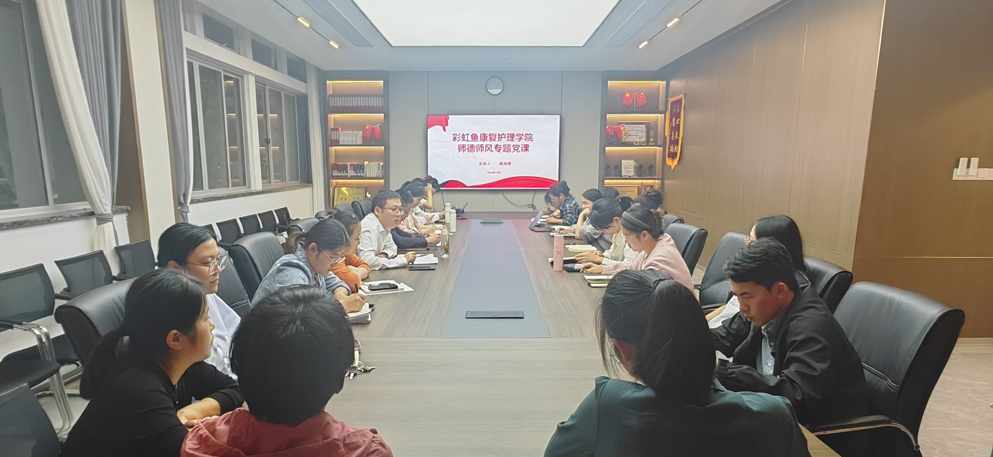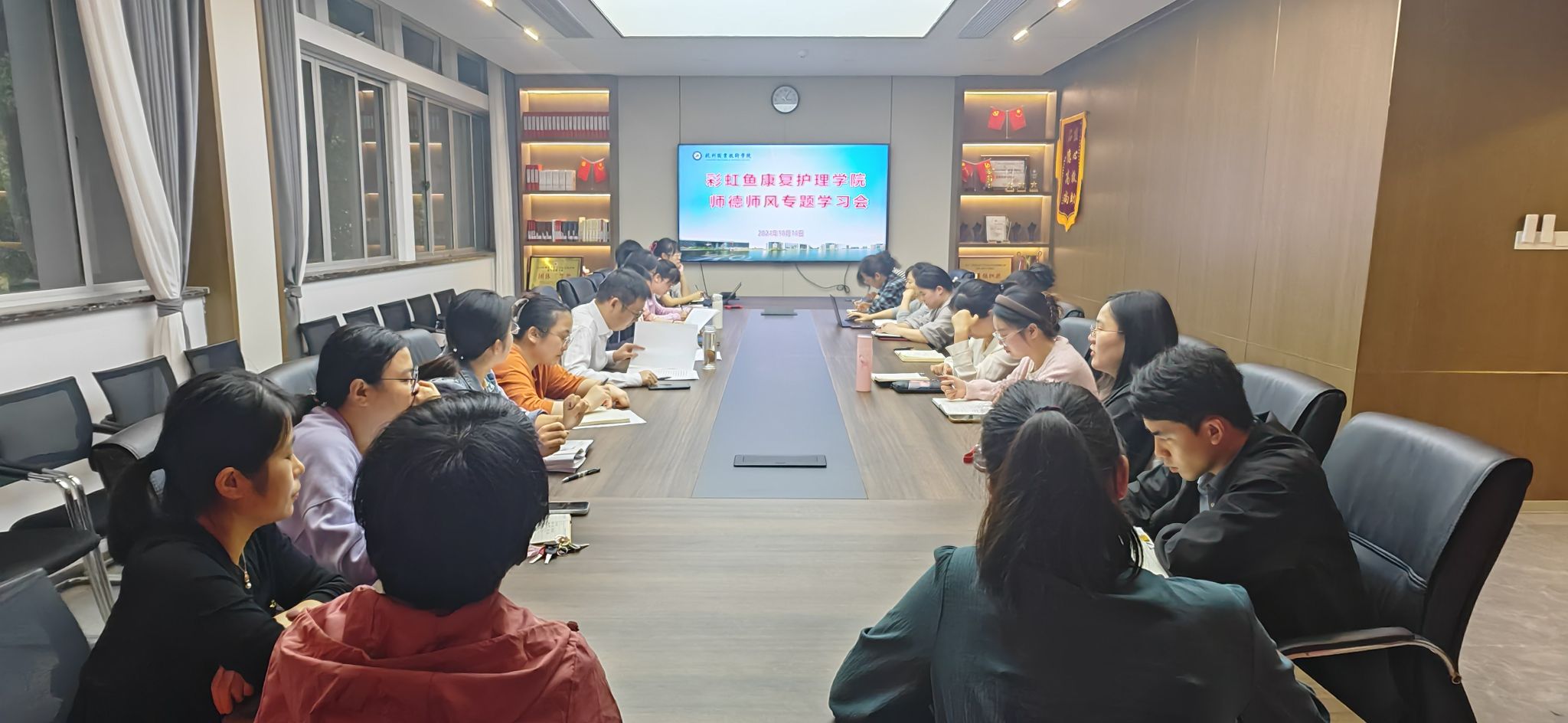 为深入贯彻落实《浙江省教育厅关于组织开展秋季师德专题教育活动的通知》文件精神,进一步加强师德师风建设,全面提升教职工思想政治素质和职业道德修养,10月16日,彩虹鱼康复护理学院在3211会议室举行师德师风专题教育活动,学院领导班子及全体教职工参会。