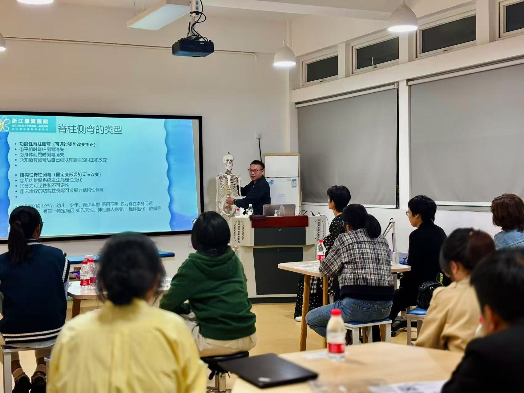 我院康复治疗技术专业组教师联合浙江大学附属邵逸夫医院、浙江省中医院、浙江康复医院等多个三甲医院专家,通过理论讲解与实践操作相结合的方式,使参训教师能够全面了解不良体态的相关知识,并掌握科学的康复方法。我院也邀请了彩虹鱼康复护理院足底扫描团队为参训教师提供相关医疗服务。此外,培训还特别强调了教师在日常教学工作中如何预防职业病的发生,以及如何有效预防、及时发现青少年的不良体态。