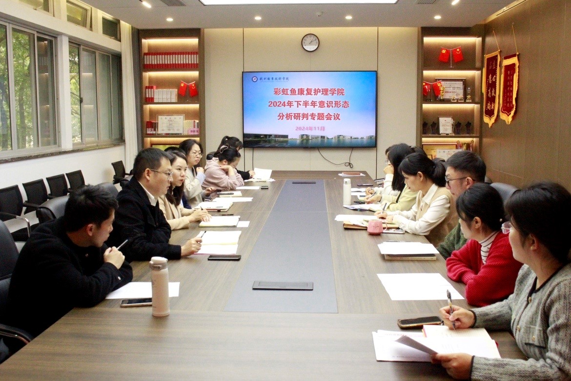 为深入学习贯彻习近平总书记关于意识形态工作的重要指示,全面落实校党委有关意识形态工作的部署要求,11月25日,彩虹鱼康复护理学院在3211会议室召开2024年下半年意识形态分析研判专题会议。学院领导班子成员、全体教师参加会议。会议由彩虹鱼康复护理学院直属党支部书记韩丹主持。