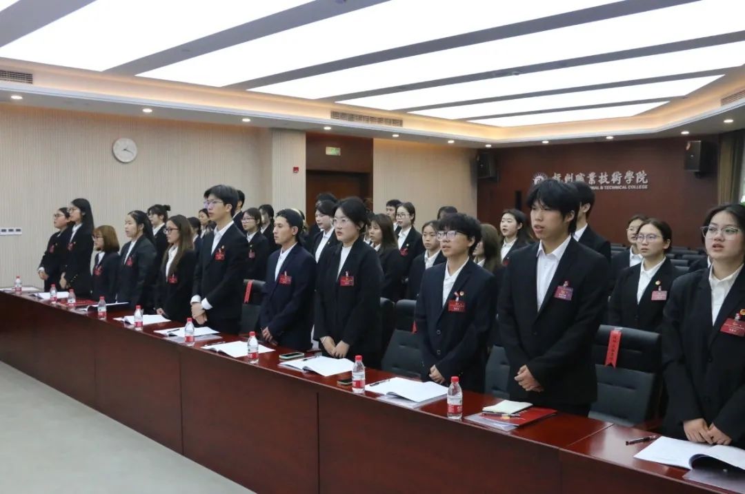 随后,团总支负责人汤永珩总结了过去一年学生会在思想引领、文化育人等方面的工作,并对新一届学生会提出三点期许:坚守服务初心、提升实践能力、勇担时代使命,激励青年学子以奋斗书写青春华章。最后,全体师生起立奏唱《光荣啊,中国共青团》,大会在庄严肃穆、团结奋进的氛围中圆满闭幕。