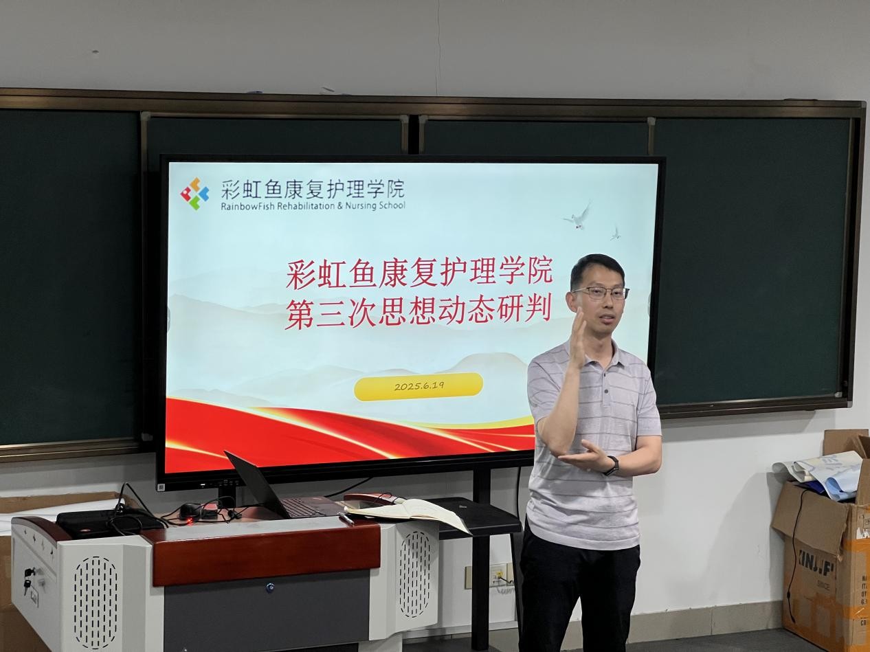 为进一步提升学生专业素养,精准把握学生思想脉搏,6月20日,彩虹鱼康复护理学院开展长期照护师带教培训暨学生思想动态研判会。学院直属党支部副书记王英杰、学工办全体成员及30名学生代表参加。