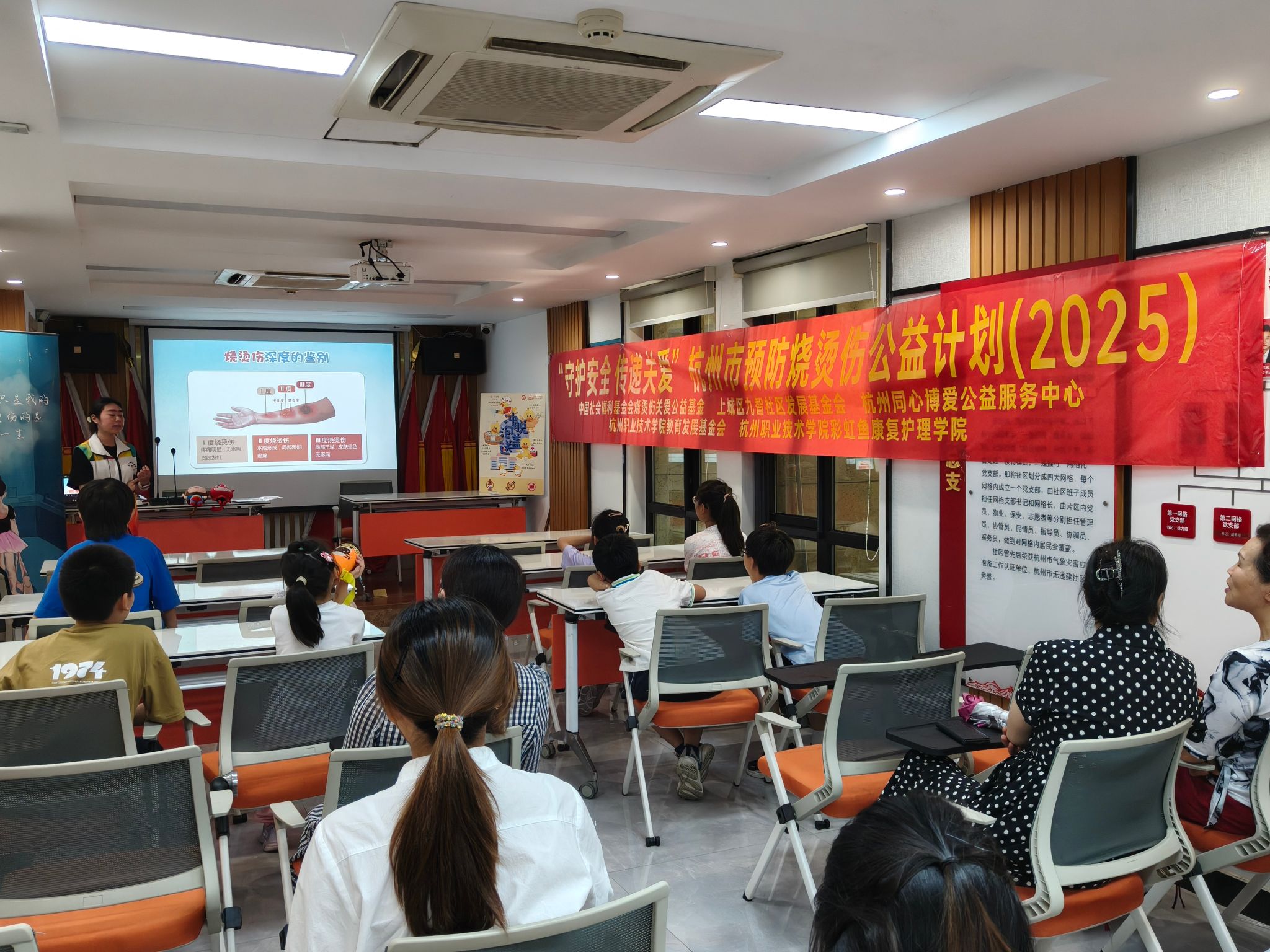 本次活动充分发挥护理专业特色,团队成员运用专业健康宣教技能,精心设计了互动性强、易于理解的科普方案。通过趣味动画《寻找烫烫小怪兽》吸引儿童兴趣后,志愿者结合护理常用感温贴的使用演示、居家常见风险点识别讲解,生动普及了“冲、脱、泡、盖、送”五步急救法等相关原理知识、操作要点及注意事项,确保家长和儿童能够掌握关键的自救互救技能。