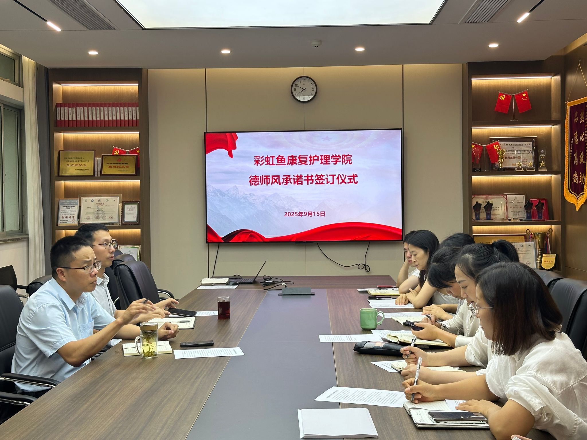 会议最后,学院全体教职工庄重签署了《彩虹鱼康复护理学院师德师风建设承诺书》,以实际行动表明了坚守师德规范、践行育人使命的决心。