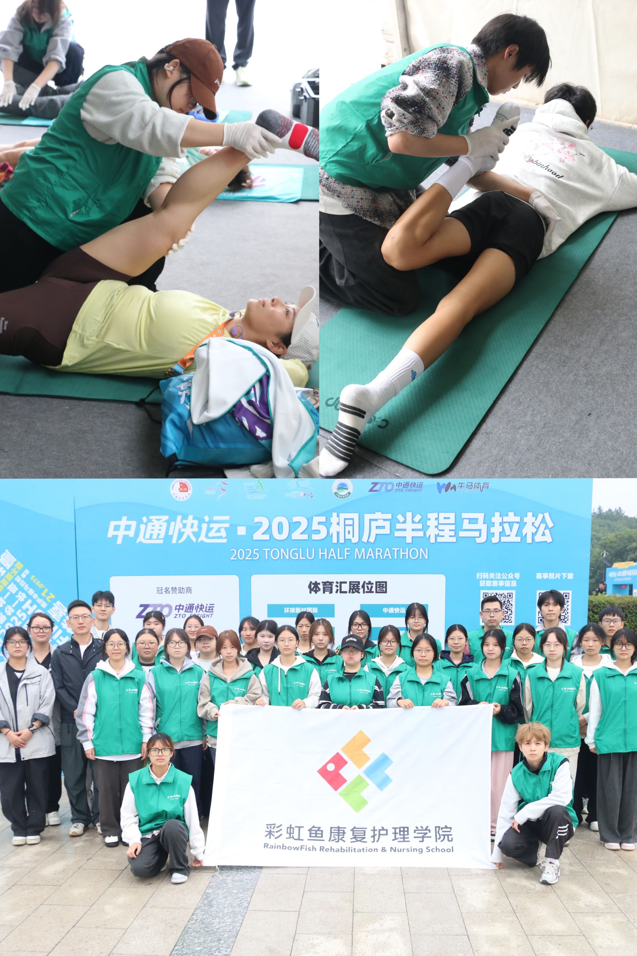 晨曦初露,2025桐庐半程马拉松在富春江畔鸣枪开跑。10月26日上午,数千名跑者齐聚桐庐,在山水如画的赛道上尽情奔跑。受赛事组委会邀请,彩虹鱼康复护理学院选派30名志愿者参与赛事服务,以专业的技术与温暖的态度,展现出康复护理学子的青春风采。