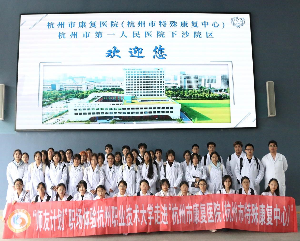 为深化校企协同育人,帮助学生直观了解康复治疗岗位的工作环境与职业要求,11月3日下午,彩虹鱼康复护理学院组织45名康复治疗技术专业2025级新生,前往杭州市康复医院开展职业体验活动。