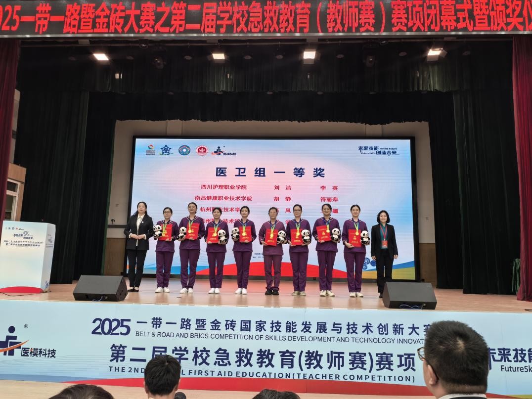 11月17日,2025年“一带一路”暨金砖国家技能发展与技术创新大赛第二届学校急救教育技能竞赛圆满落幕。我校急救教育师生团队凭借扎实的专业功底和出色的现场发挥,在激烈角逐中双线告捷,共斩获全国一等奖3项、二等奖1项,总成绩名列前茅,学校荣获“最佳组织奖”。